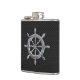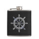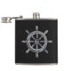 Chrome Nautical Wheel on Carbon Fiber Print Hip Flask
