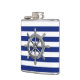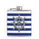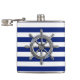 Chrome Nautical Wheel on Navy Stripes Hip Flask