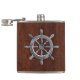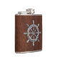 Chrome Nautical Wheel on Wet Mahogany Print Hip Flask