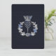 A chrome like Scottish thistle applique design on a navy blue carbon fibre style print.
