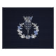A chrome like Scottish thistle applique design on a navy blue carbon fibre style print.