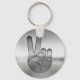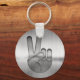 A brushed metal faux finish with a faux cutout peace sign hand, with faux shadows for faux depth. Digital art, not real metal with a real cutout. T-shirts, mugs, novelty gift swag.