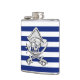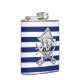 A modern nautical silver like applique style on a navy blue stripes pattern decor for a fine custom gift.