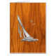 A silver chrome like regatta sailboat scene on a teak wood grain style background decor. A racy modern nautical gift.