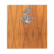 A silver chrome like rope anchor design on a teak wood grain style background decor. A racy modern nautical gift.