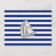 A silver chrome like regatta sail boat design on a navy blue stripes decor. A modern nautical sailboat gift.