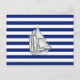 A silver chrome like regatta sail boat design on a navy blue stripes decor. A modern nautical sailboat gift.