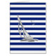 A silver chrome like regatta sail boat design on a navy blue stripes decor. A modern nautical gift.