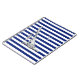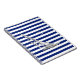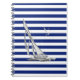 A silver chrome like regatta sail boat design on a navy blue stripes decor. A modern nautical gift.