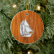 Chrome Silver like Sailboat on Teak Veneer Ceramic Ornament