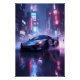 Chrome Sports Car in Cyberpunk Neon City at Night Poster