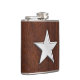 A modern nautical style silver chrome like applique on a wet mahogany wood print decor for a fine custom flask gift.