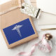 Chrome Style Caduceus Medical Symbol on Navy Blue Rectangular Sticker