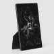 A silver chrome like Gemini zodiac symbol on a vintage Hevelius astrology constellation map on black background. A mix of modern urban racy and vintage designs for a great custom birthday gift idea.