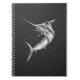 A silver chrome like marlin fish applique design on a carbon fibre style background decor. A racy modern nautical gift.