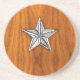Chrome Style Nautical Star on Teak Veneer Coaster