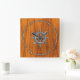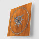 Chrome Style Nautical Wheel on Teak Veneer Square Wall Clock