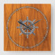 A nautical wheel design on a teak wood veneer grain style background decor. A racy modern nautical gift.