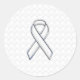 Chrome White Ribbon Awareness on Checkers Print Classic Round Sticker
