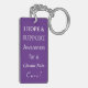 Awareness ribbon angel keychain features the art of a purple awareness angel painting. The art side notes "Chronic Pain Awareness" and the reverse side states "I Hope & Support Awareness for a Chronic Pain Cure!" Add your own custom words for personalised angel art cause awareness custom charm key chains! You can also remove the text for an art only angel pendant key chain. The purple awareness angel ribbon painting art keychains can be customised with personalised messages to make great awareness cause art key chains for fundraisers, awareness gifts, or other special events. Give this angel art keychain charm as an awareness ribbon gift for any occasion.