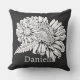 Chrysanthemum Black Line Drawing with Your Name Cushion