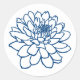 Chrysanthemum Drawing - Indigo Style Blue Classic Round Sticker