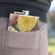 The flask itself is fine. It’s a cheap flask, obviously bought in bulk, however am prepared to overlook that. Given that it is a personalized item, I would have liked to have seen gift boxing instead of the generic packaging. Terrible printing, and/or quality. It’s a cheap, tacky vinyl. It is not cut straight and is also applied in a way that it is overhanging the bottom, causing the glue to catch on items and it will eventually roll and tear, damaging the wrap.