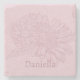 Chrysanthemum Pink Line Drawing with Your Name Stone Coaster