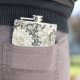 The flask itself is fine. It’s a cheap flask, obviously bought in bulk, however am prepared to overlook that. Given that it is a personalized item, I would have liked to have seen gift boxing instead of the generic packaging. Terrible printing, and/or quality. It’s a cheap, tacky vinyl. It is not cut straight and is also applied in a way that it is overhanging the bottom, causing the glue to catch on items and it will eventually roll and tear, damaging the wrap.