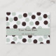 Chubby Mint green and Dark Chocolate brown polka dot business cards. I left the background white, but it can be changed to suit your needs. Text areas are fully customisable with your information.