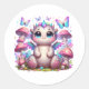 chubby pastel dino with mushrooms and butterflies Classic Round Sticker