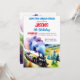 Chugga chugga train birthday party template invitation instant download, vintage steam train going through the countryside hills blue and red