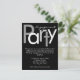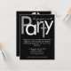 Cute engagement invitation, customise with any text. Fun and cheerful block style lettering in bold high contrast black and white typeface on black background. Sleek contemporary design is perfect for marriage and wedding engagements. Customise online with your event details.