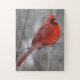 Chunky Bright Red Male Cardinal in Winter Snow Jigsaw Puzzle