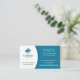 A clean business card great for churches that has a logo icon design with a cross at the end of a river.