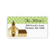 Add that special touch to your invitations with these address labels. Use for return address labels. It has a brown church on the bottom with a dark and light green polka dot thick stripe across the top of the sticker. Add your information to personalise. © thecraftyclip