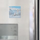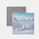 Photo magnet with the church of Colfosco covered in snow with in the background the Sella Group Dolomites mountains in a beautiful winter landscape in Alta Badia, South Tyrol, Italy with the text 'Alta Badia, Italy'.