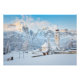 Photo print of the church of Colfosco covered in snow with in the background the Sella Group Dolomites mountains in a beautiful winter landscape in Alta Badia, South Tyrol, Italy.