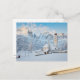Photo postcard of the church of Colfosco covered in snow with in the background the Sella Group Dolomites mountains in a beautiful winter landscape in Alta Badia, South Tyrol, Italy.