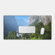 Photo desk mat with a swiss landscape with a church surrounded by high Alps mountains like Eiger and Jungfrau on a summer day in Lauterbrunnen valley, Bernese Oberland, in Switzerland.