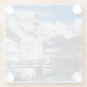 Glass photo coaster with the famous St. Sebastian church in the snow backed by high Alps mountains with a bridge and a small brook in Ramsau b. Berchtesgaden, near Austria in Germany in winter.