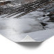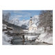 Photo print of a church under a layer of snow next to a mountain stream and a bridge with Alps mountains in the background in a winter landscape in Ramsau bei Berchtesgaden in the Berchtesgadener Land in Bavaria, southern Germany, near the border with Austria.
