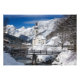 Photo print of the famous St. Sebastian church in the snow backed by high Alps mountains with a bridge and a small brook in Ramsau b. Berchtesgaden, near Austria in Germany in winter.