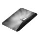 Rectangular photo magnet with a small church or chapel on a hill under motion-blurred clouds in the sky in black and white creating a very strong conceptual image of keeping faith in rough times.
