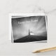 Photo postcard and sympathy card of a small church or chapel on a hill under motion-blurred clouds in the sky in black and white creating a very strong conceptual image of faith in rough times. It comes with the text "keep the faith!".