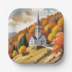 Little white church up on a hill with a mountains, Autumn Leaves and Fall Trees background.