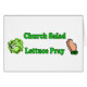 Church Salad, Lettuce Pray. This is a fun Christian saying that also shows off a head of lettuce and pair of praying hands. Green lettering with black outline really make this design stand out. Design is property of Diligent Heart.