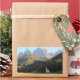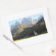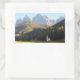 Rectangular photo sticker with the church of San Giovanni in Ranui (Sankt Johann) in front of the Geisler or Odle dolomites mountain peaks in Santa Maddalena (Sankt Magdalena) in the Val di Funes in Italy.