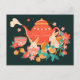 Chuseok Mid-Autumn Festival Teapot and Bunnies Postcard