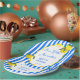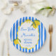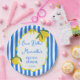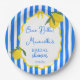 Ciao Bella Dolce vita Lemons blue stripes Italian bridal shower personalised paper plates template, citrus lemons blue stripes bridal shower monogrammed paper plates; summer Italian bridal shower printed paper plates, vintage Italian bridal shower paper plates, wavy border funky bridal shower personalised name paper plates